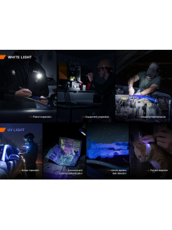 La Fenix SW05R-UV es una linterna compacta y multifuncional que ofrece una potencia máxima de 150 lúmenes y una distancia de haz de hasta 39 metros. Además de un LED blanco de alto rendimiento, la luz está equipada con un LED UV de 365 nm que ofrece una potencia máxima de 1500 mW. El ángulo de la cabeza de la luz ajustable de 200° permite la iluminación desde múltiples direcciones. Los interruptores individuales controlan cada fuente de luz para un funcionamiento preciso y rápido. Alimentado por un 700 mAh incorporado, es totalmente recargable a través del puerto de carga USB tipo C impermeable interno. La cola ligera cuenta con un potente imán para el uso manos libres en superficies magnéticas. El clip para el cuerpo incluido proporciona una sujeción segura al bolsillo, el ala del sombrero o la correa de la mochila. Con todas estas características y una clasificación de impermeabilidad IPX6, el Fenix SW05R-UV es una opción de iluminación ideal para operaciones de aplicación de la ley y autenticación de documentos.