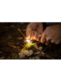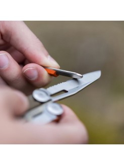 La Leatherman Signal está diseñada para cualquier aventura. Incluye una varilla de ferrocerio (para encender fuego), un silbato de emergencia, una superficie de percusión y una afilada hoja combinada.